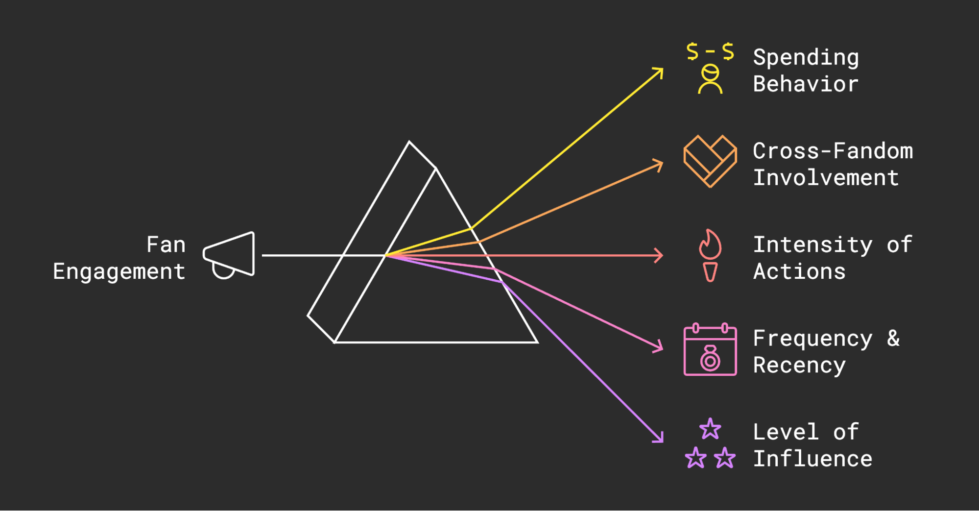 Intensity of Actions: Understanding the depth of each engagement. Did the fan attend a show and dress up extensively, spend significant time trying to secure tickets, stand in line for hours, or host an afterparty afterwards? We look at their commitment and effort.
