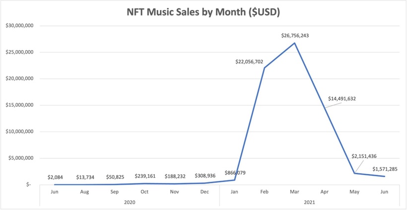Music NFT market update, Q2 2021: Sales down by over 90%, but artists are still experimenting