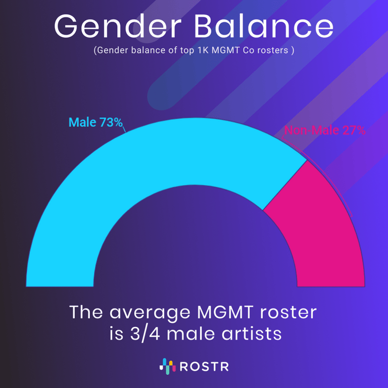 “The fact that there’s a massive gender imbalance at this level leads to big downstream problems,” says Williamson. “It’s not just managers who are responsible for this, but if we’re trying to find a way to improve representation, management seems to be a really good place to focus, because it’ll have an outsize impact down the line. Some of these bigger management companies can look inward and try to understand why it is that their top two artists are female, but 80% of their roster is male. Data doesn’t fix everything, but it can be the start of a solution.”