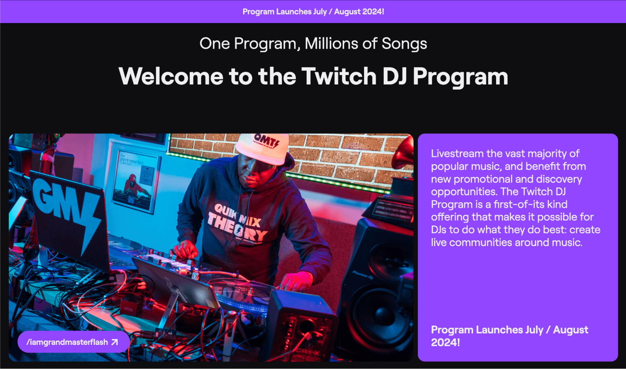 Earlier this month, Amazon-owned livestreaming giant Twitch unveiled its long-awaited DJ Program, set to launch in summer 2024. The initiative aims to provide a “safe, long-term home” for DJs — offering access to millions of songs from all three major labels and Merlin, as well as discoverability upgrades for DJ creators such as front-page recommendations and a new official DJ category.